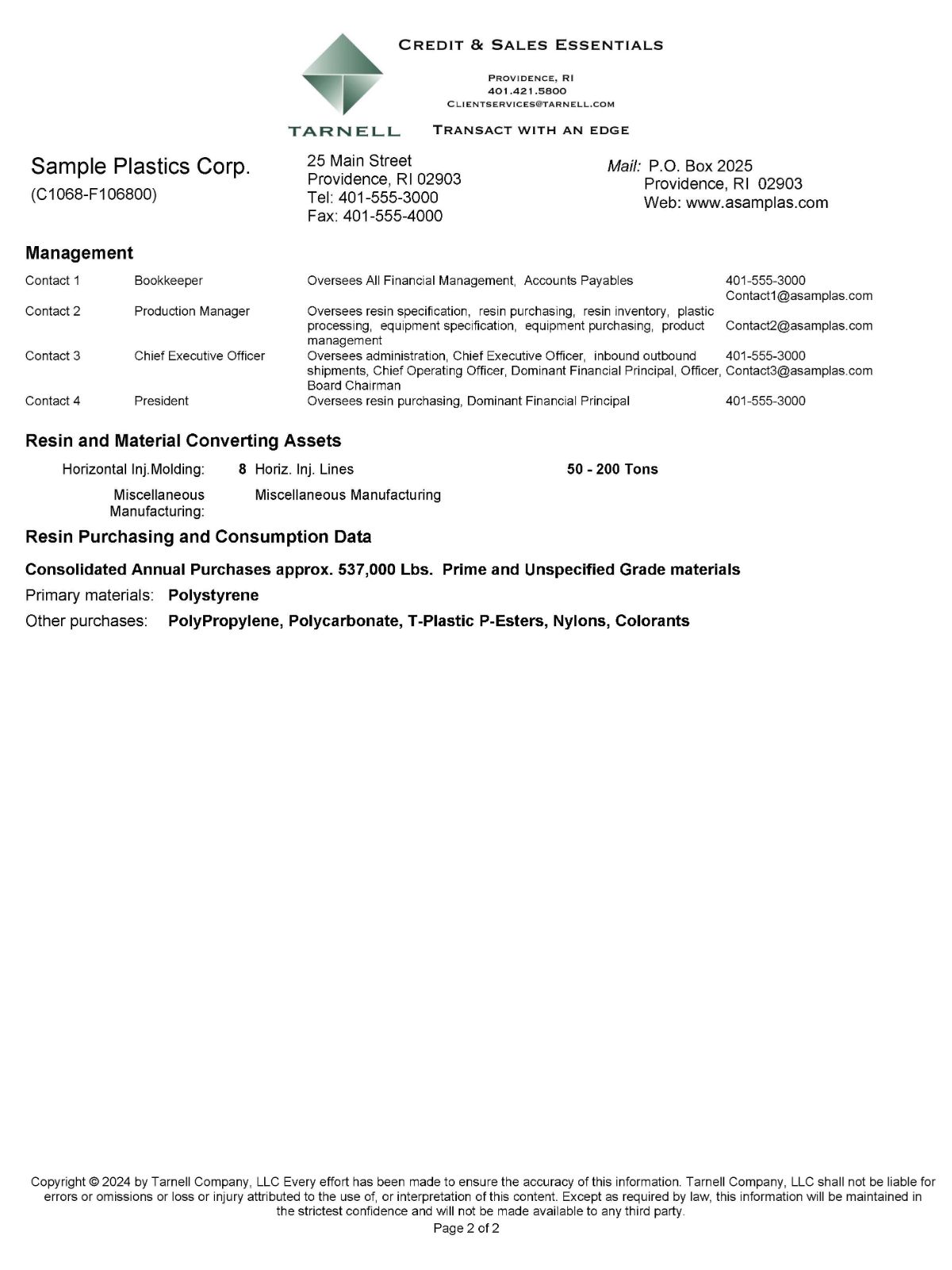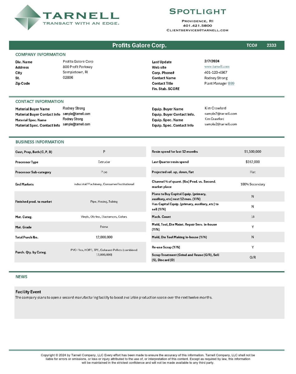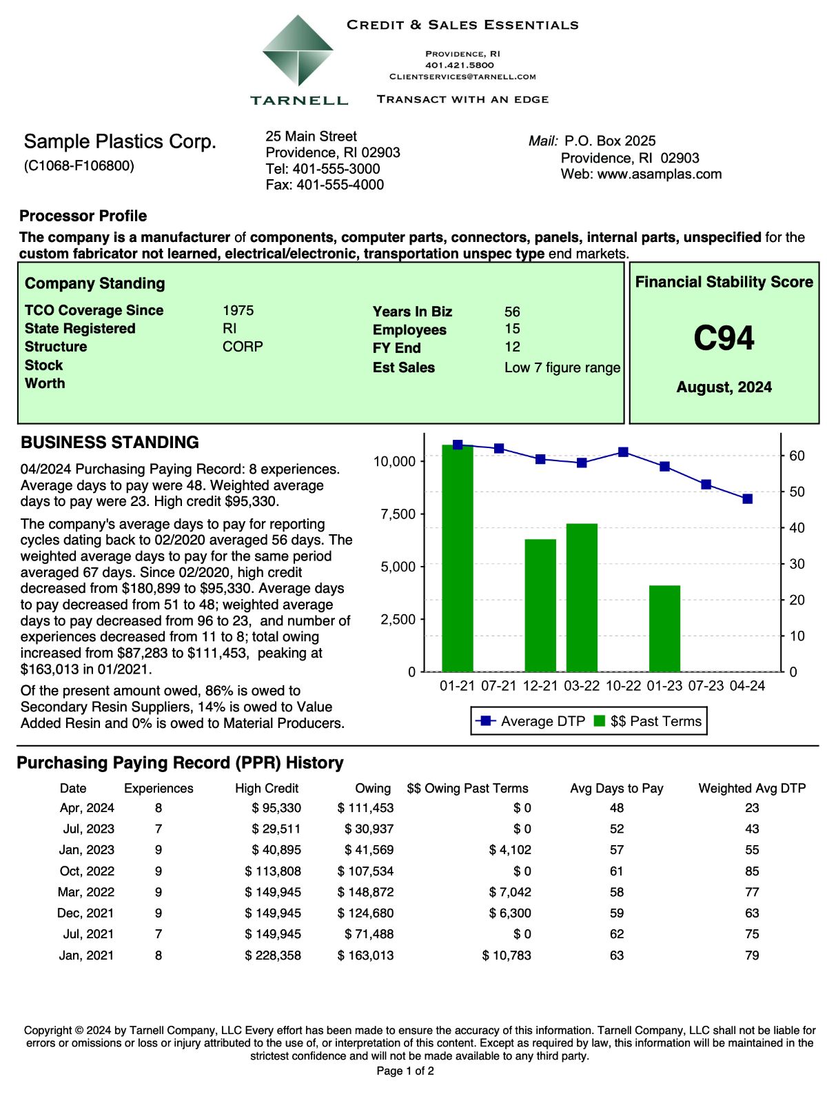 Tarnell Company is a well-established provider of financial risk insights and market intelligence for the plastics industry. With years of experience, we equip businesses with the tools needed to evaluate credit risk, assess potential partners, and make smart, growth-focused decisions. Our reliable databases and deep industry knowledge help Producers, Distributors, and other suppliers stay informed and competitive.